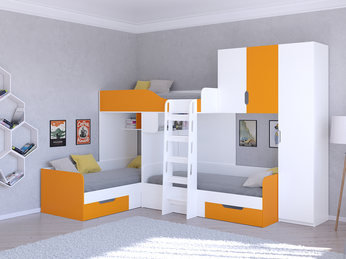 Отзывы о Столплит Кровать двухъярусная Трио/2 Белый Оранжевый