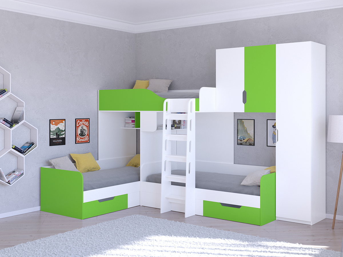 Кровать двухъярусная Трио/2 Белый (Салатовый) Код I0000386488