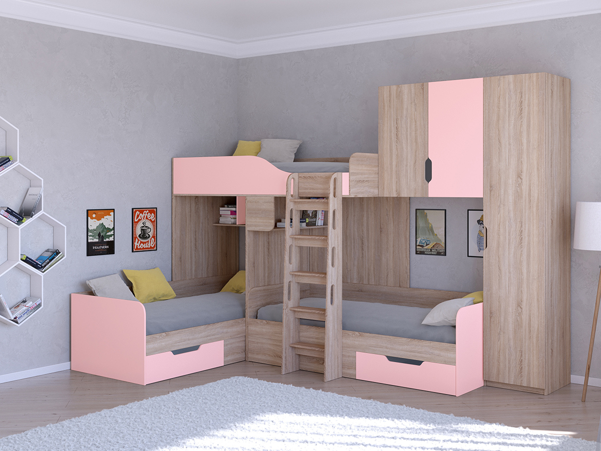Отзывы о Столплит Кровать двухъярусная Трио/2 Дуб Сонома Розовый