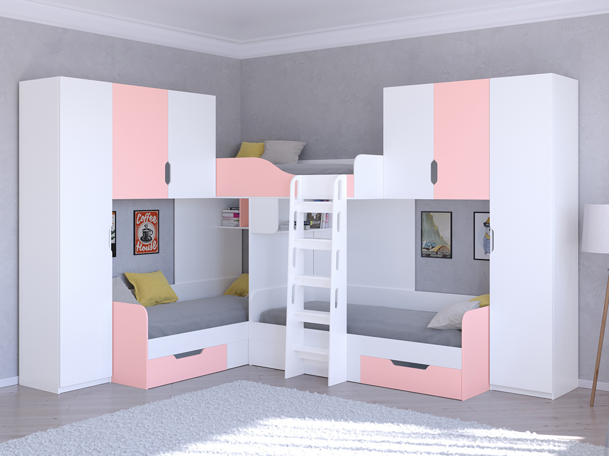 Отзывы о Столплит Кровать двухъярусная Трио/3 Белый Розовый