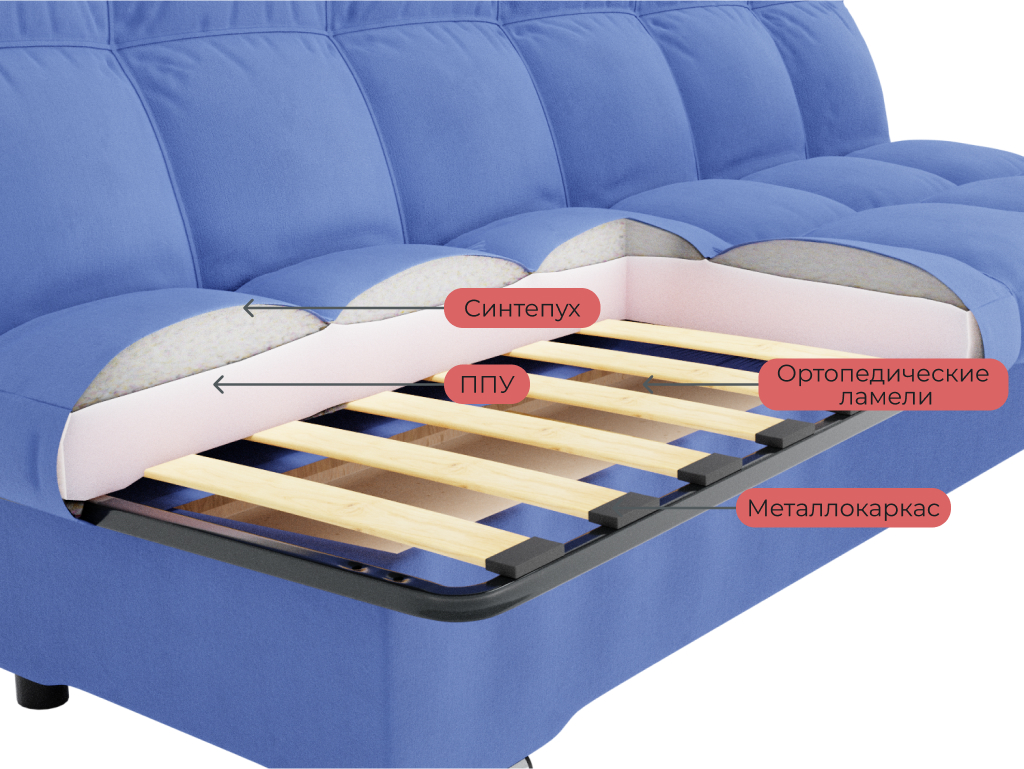 Задняя стенка дивана выполнена из ткани основы;