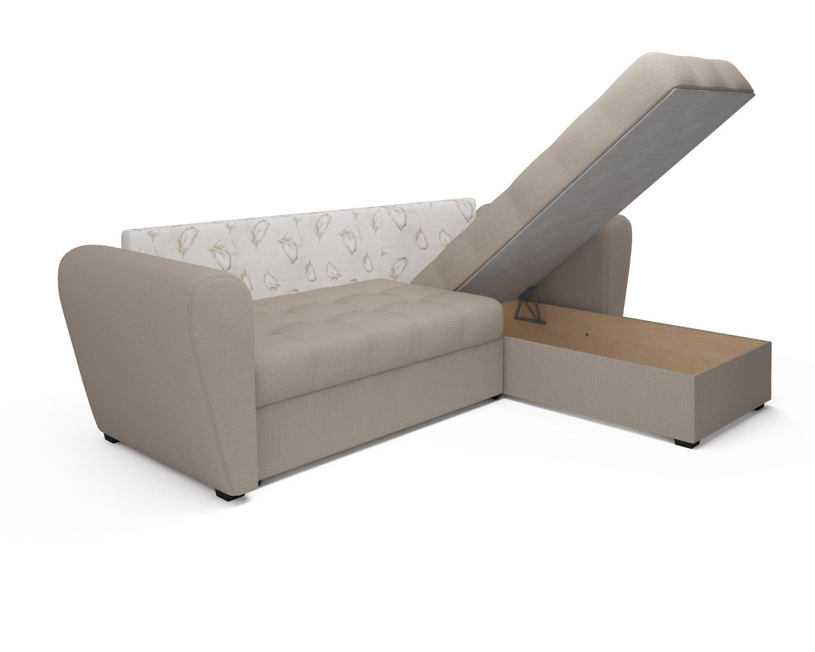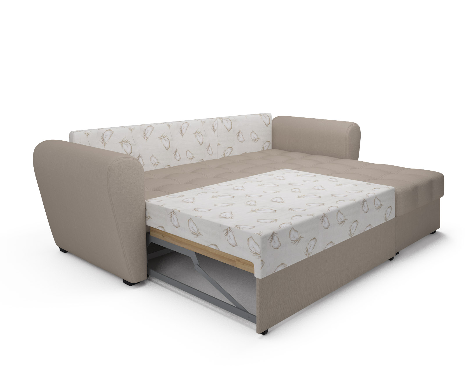 Особенностью углового дивана «Амстердам» является его механизм трансформации "дельфин", который позволяет легко превратить его в полноценную кровать. Это делает диван идеальным для гостей или для использования в качестве дополнительного спального места. Процесс трансформации прост и быстр, позволяя получить просторное место для сна.
