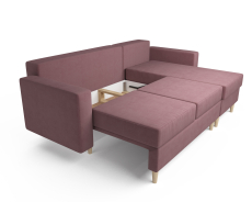 За спальным местом скрывается вместительный ящик-поддон для хранения спальных принадлежностей. Высокие ножки, изготовленные из массива бука создают доступное пространство, что облегчает уборку под диваном. «Белфаст» имеет универсальный угол, позволяющий располагать диван с любой стороны. Каркас выполнен из шлифованного бруса хвойных пород дерева. Мягкие приспинные подушки с пуговкой, поддерживают спину во время чтения книги или просмотра телевизора.