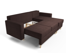 За спальным местом скрывается вместительный ящик-поддон для хранения спальных принадлежностей. Высокие ножки, изготовленные из массива бука создают доступное пространство, что облегчает уборку под диваном. «Белфаст» имеет универсальный угол, позволяющий располагать диван с любой стороны. Каркас выполнен из шлифованного бруса хвойных пород дерева. Мягкие приспинные подушки с пуговкой, поддерживают спину во время чтения книги или просмотра телевизора.