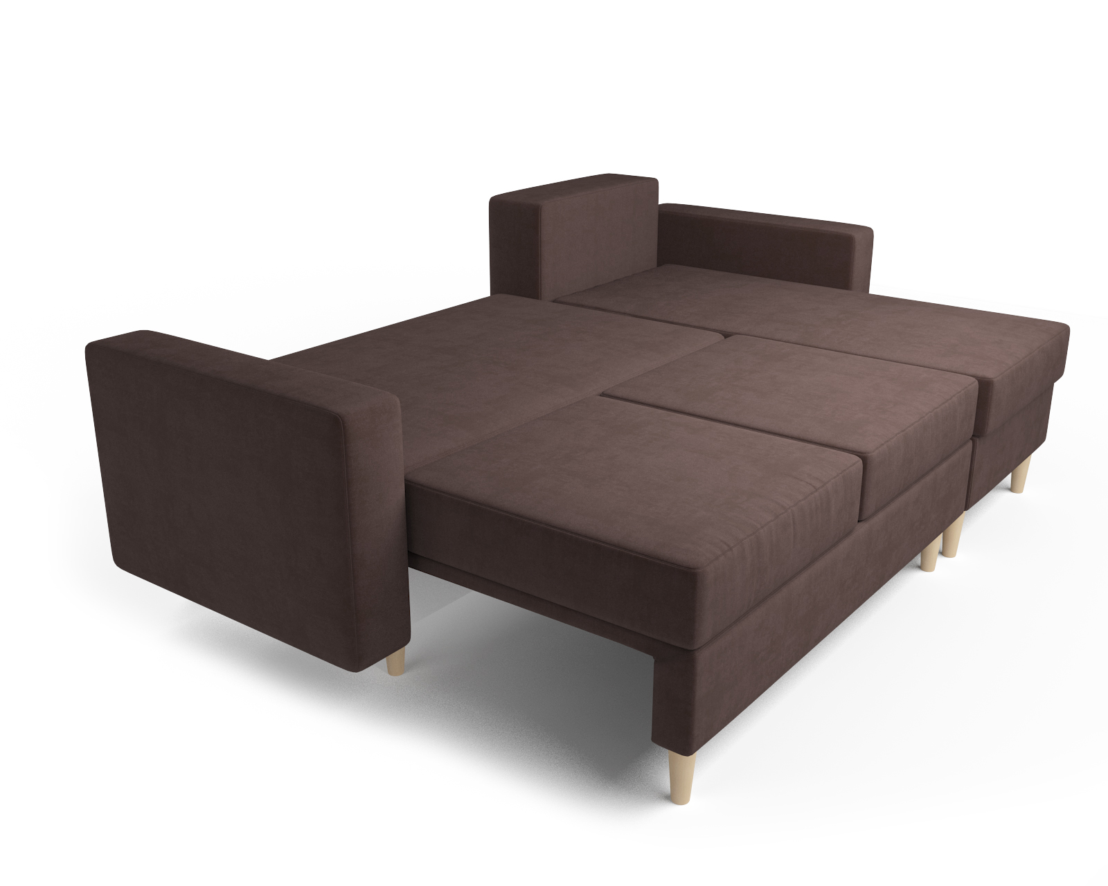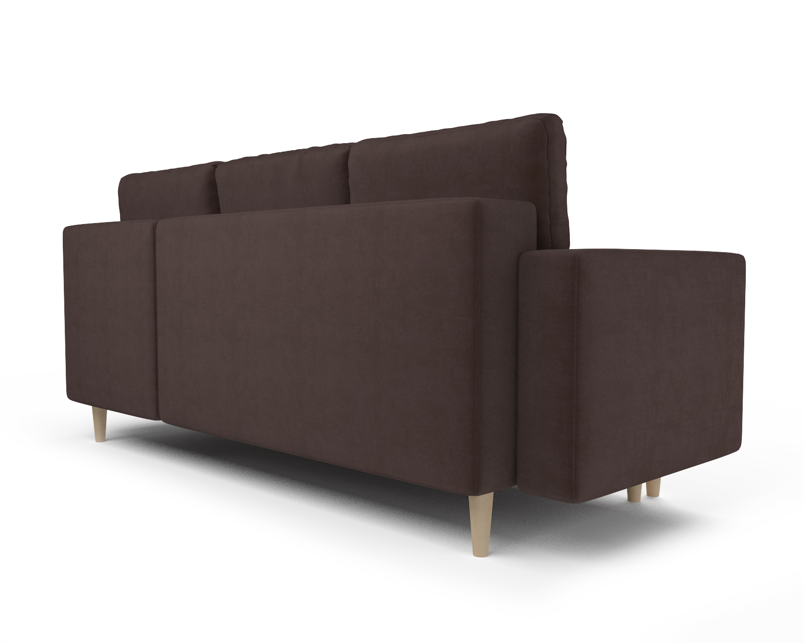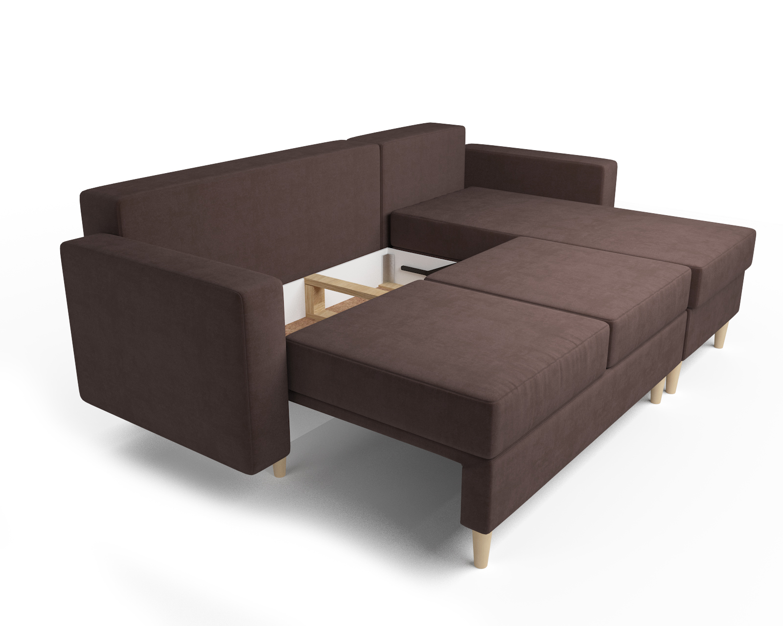 За спальным местом скрывается вместительный ящик-поддон для хранения спальных принадлежностей. Высокие ножки, изготовленные из массива бука создают доступное пространство, что облегчает уборку под диваном. «Белфаст» имеет универсальный угол, позволяющий располагать диван с любой стороны. Каркас выполнен из шлифованного бруса хвойных пород дерева. Мягкие приспинные подушки с пуговкой, поддерживают спину во время чтения книги или просмотра телевизора.