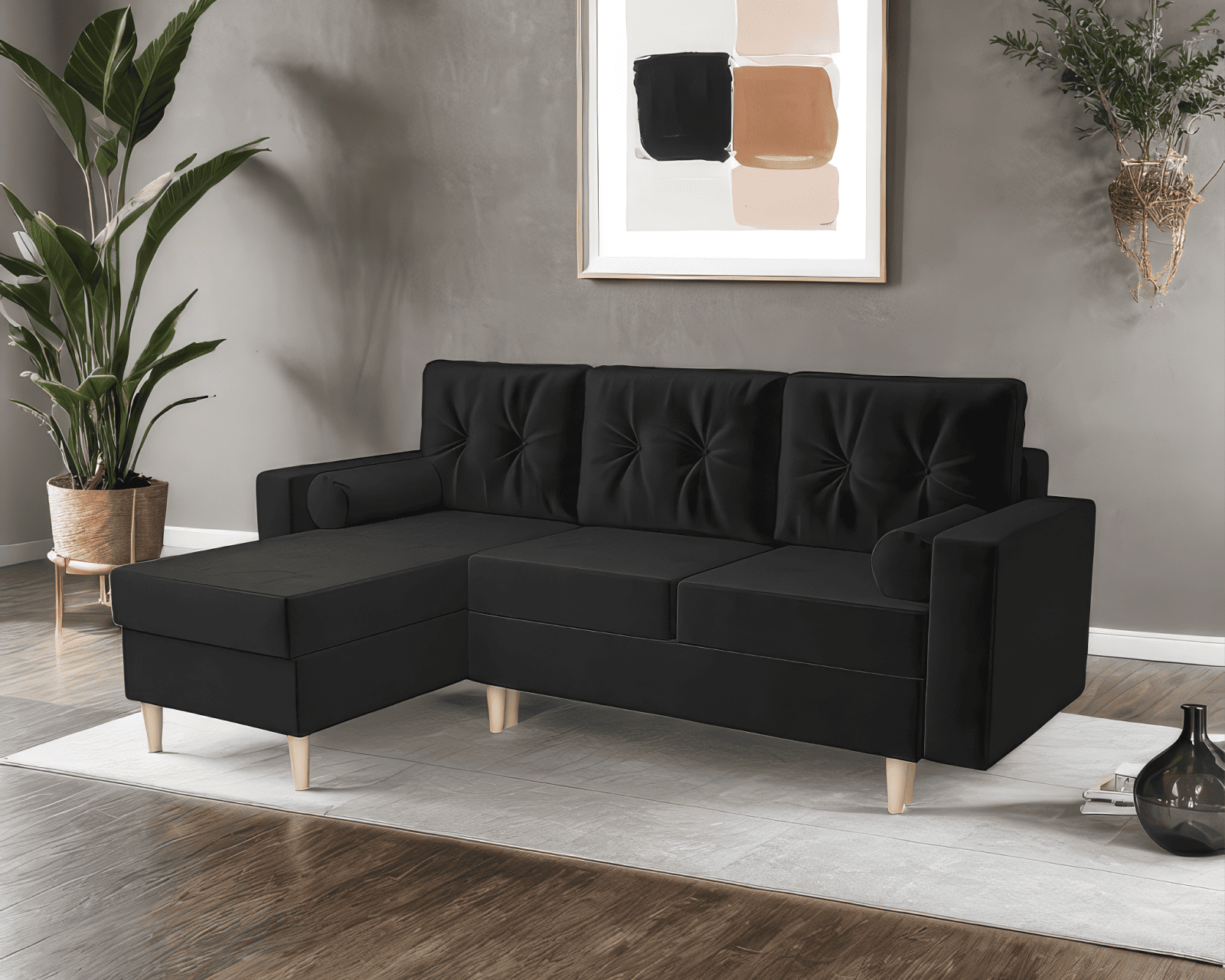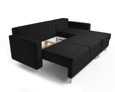 За спальным местом скрывается вместительный ящик-поддон для хранения спальных принадлежностей. Высокие ножки, изготовленные из массива бука создают доступное пространство, что облегчает уборку под диваном. «Белфаст» имеет универсальный угол, позволяющий располагать диван с любой стороны. Каркас выполнен из шлифованного бруса хвойных пород дерева. Мягкие приспинные подушки с пуговкой, поддерживают спину во время чтения книги или просмотра телевизора.