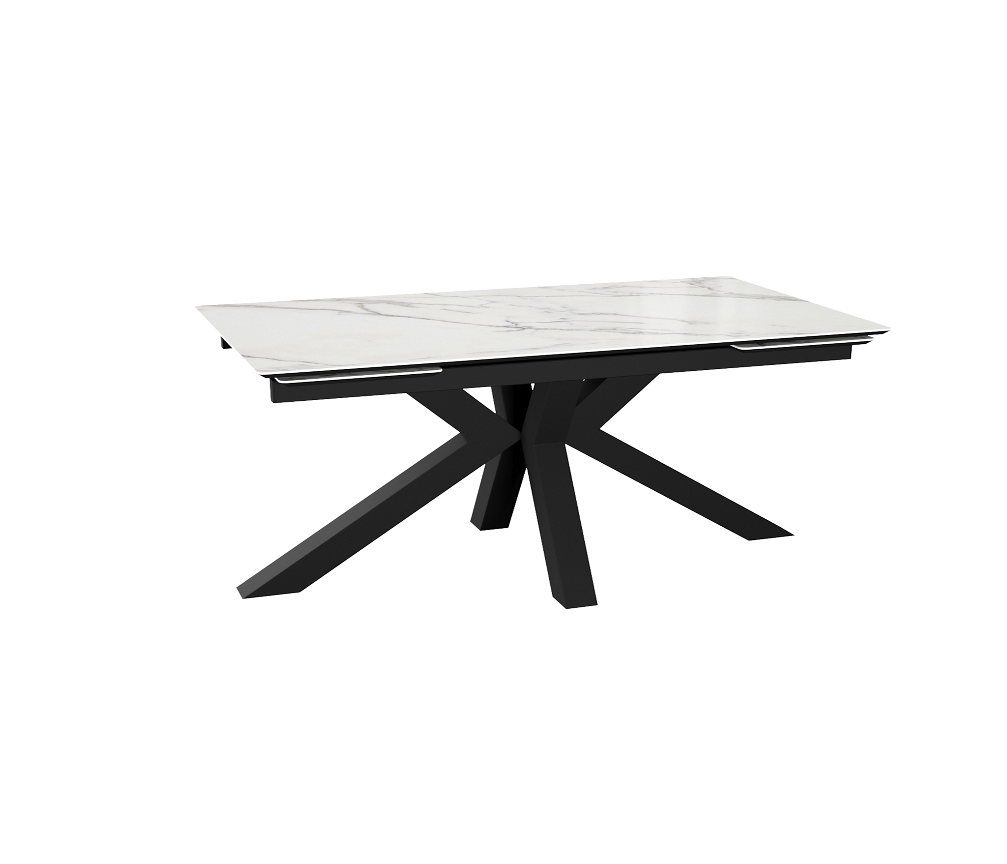 Столешница выполнена из: керамики (5,6 мм) + МДФ. Рама металлическая, крашенная. Подстолье: опоры металлические.